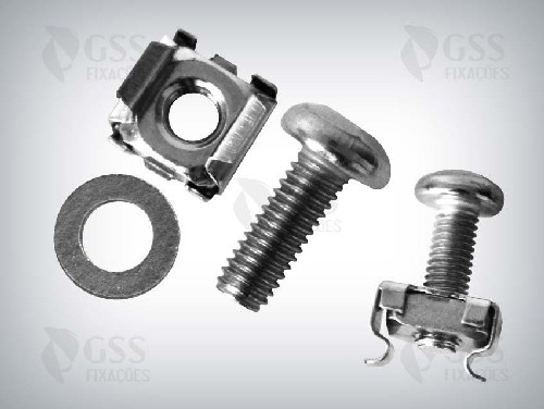 Lote mínimo de 2.500 unidades Importância da porca gaiola O parafuso porca gaiola é crucial para a montagem de racks para salas de comunicações e outros ambientes semelhantes. Graças a ele, é possível que esses objetos sejam fixados e que se mantenham em pé, possibilitando que os racks suportem o peso de diversos equipamentos eletrônicos que serão colocados sobre ele. Especificações do produto: Material da porca: para que a estrutura em que a ...